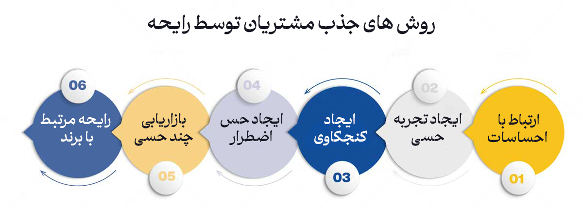 - استفاده در تبلیغات: ترکیب رایحهها با تبلیغات و بستهبندی محصولات بهگونهای که مشتریان را جذب کند.