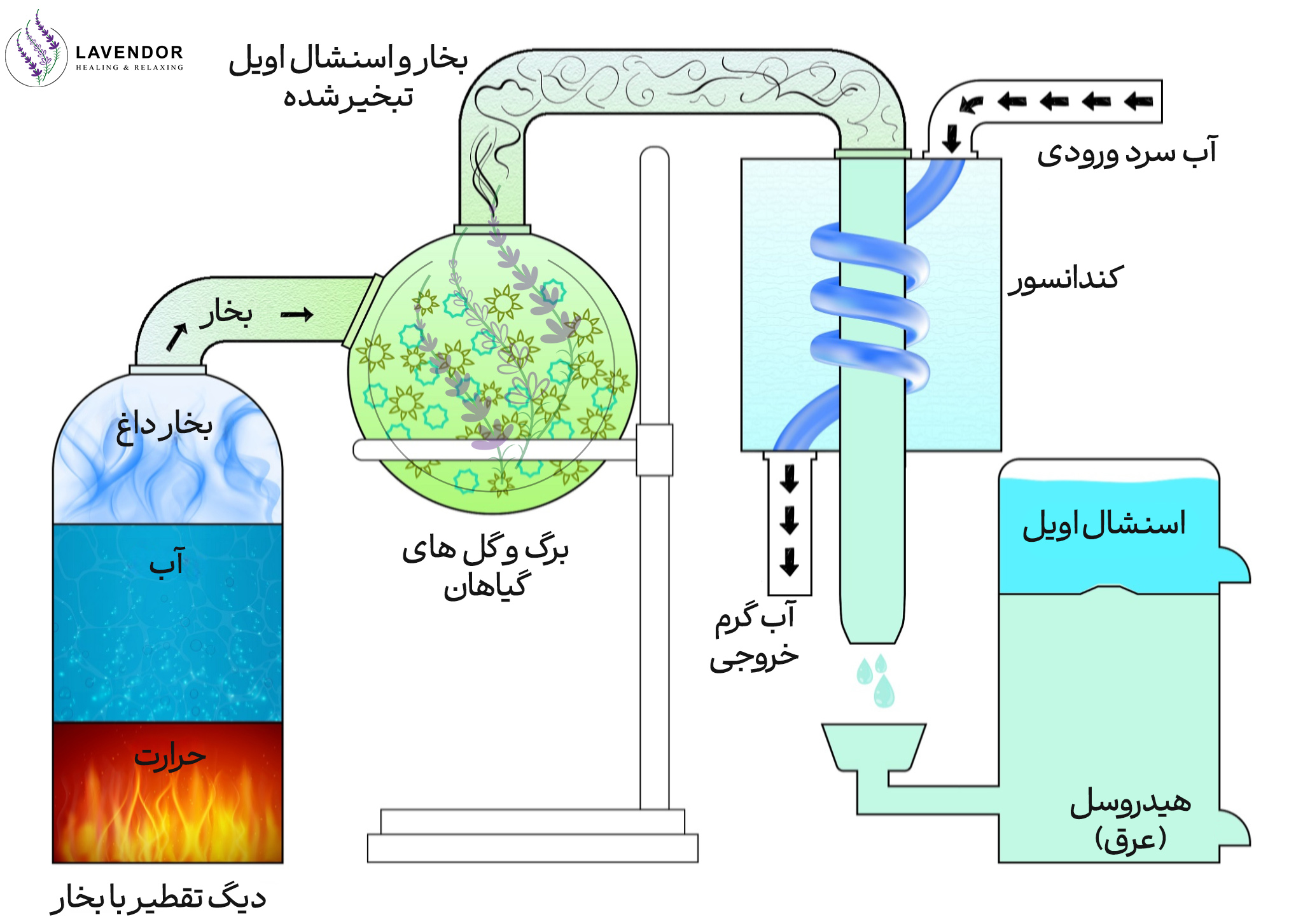 در فرایند تقطیربا بخار آب که یکی از اصلی ترین روش های اسانس گیری است، با استفاده از گرما، اسانس از گیاه جدا می شود.